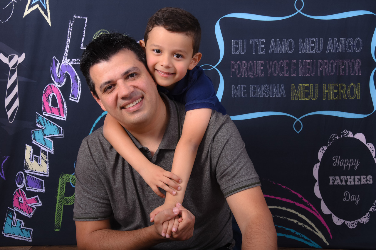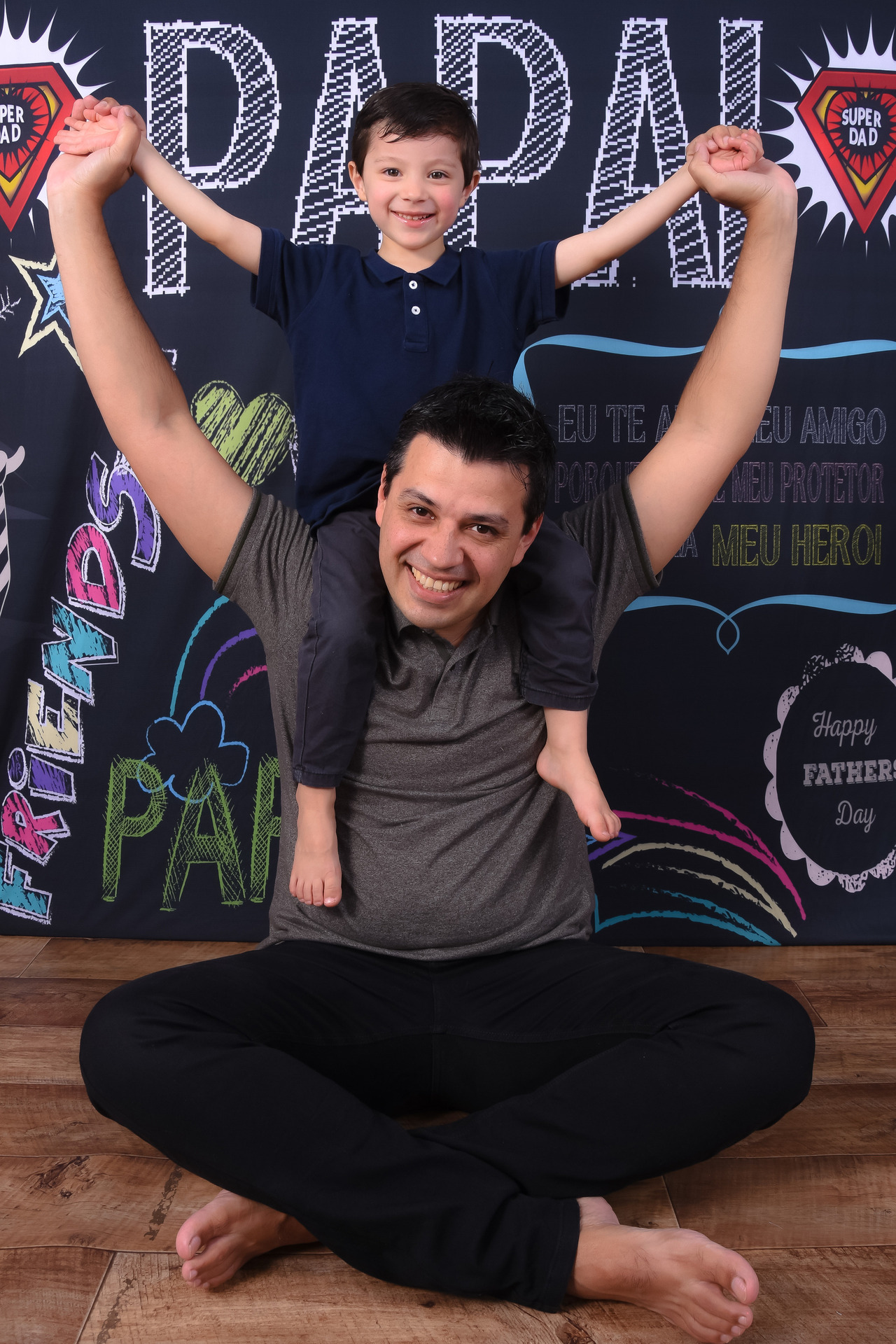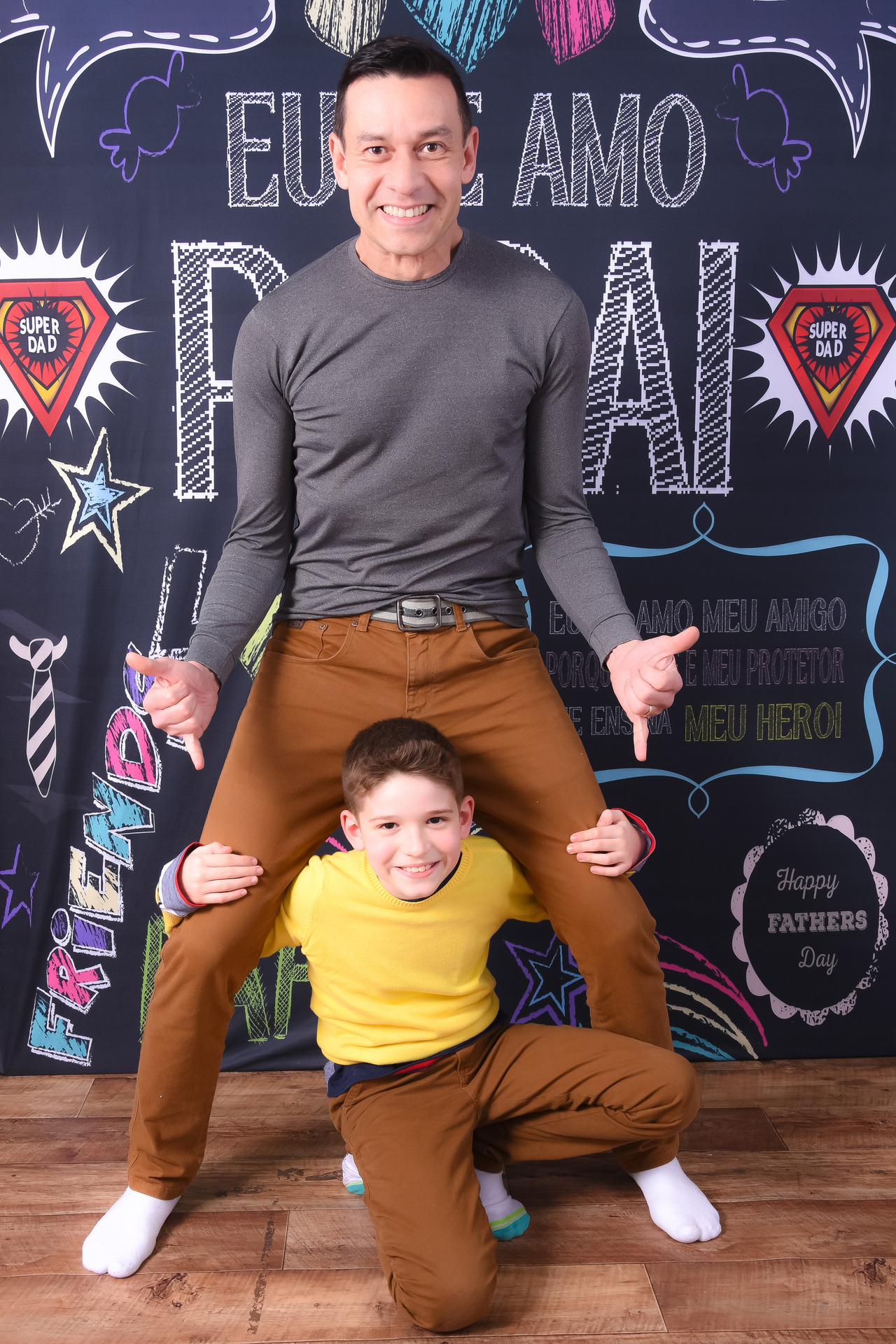 Tem papais que ficam tímidos no início e logo se soltam... tem pais que já chegam com a corda toda e fazem caras, bocas e poses para a câmera! Mas sempre é muito divertido, pois as crianças se acabam de brincar com eles!