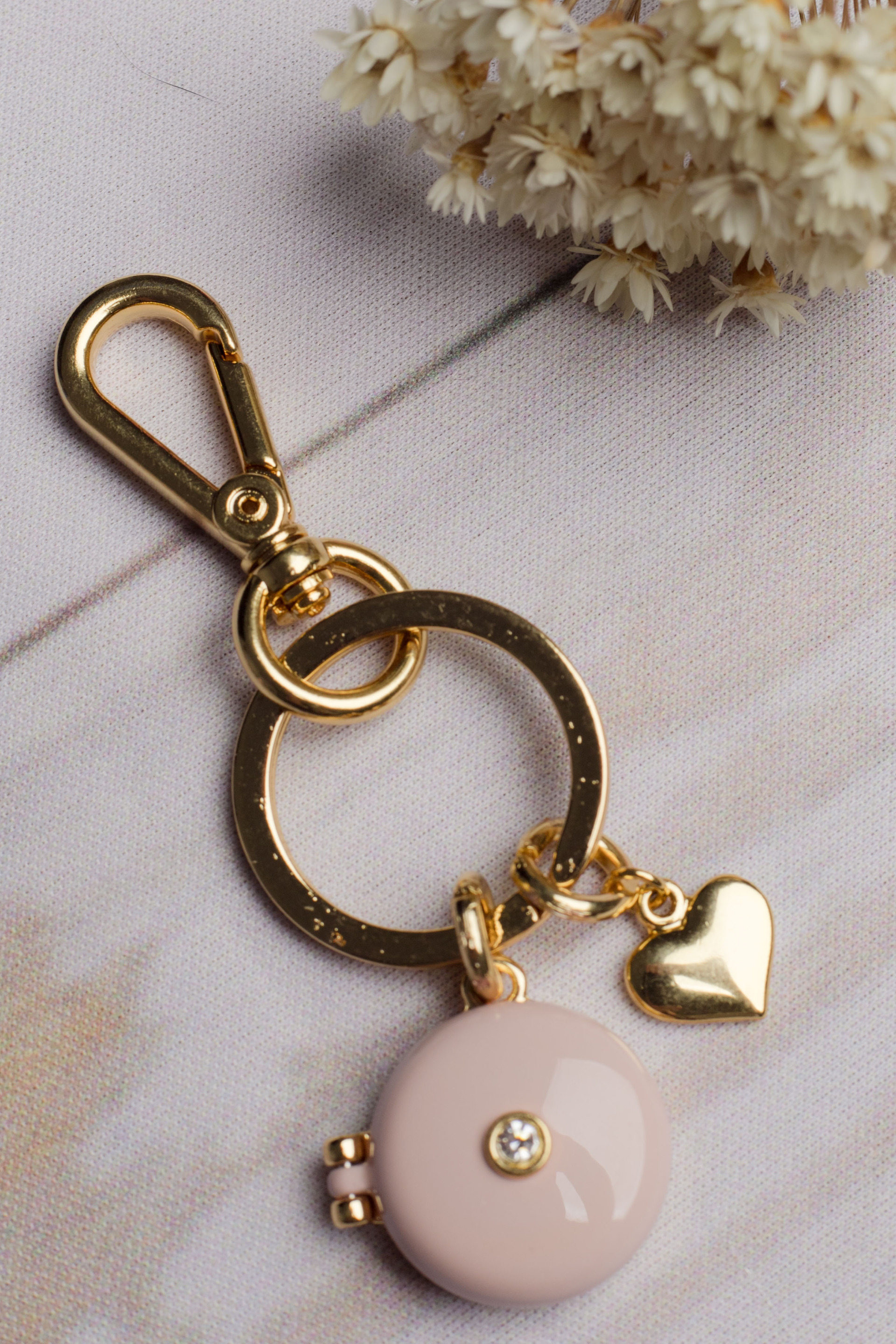 CHAVEIRO | Relicário Redondo Rosa com Coração | DOURADO