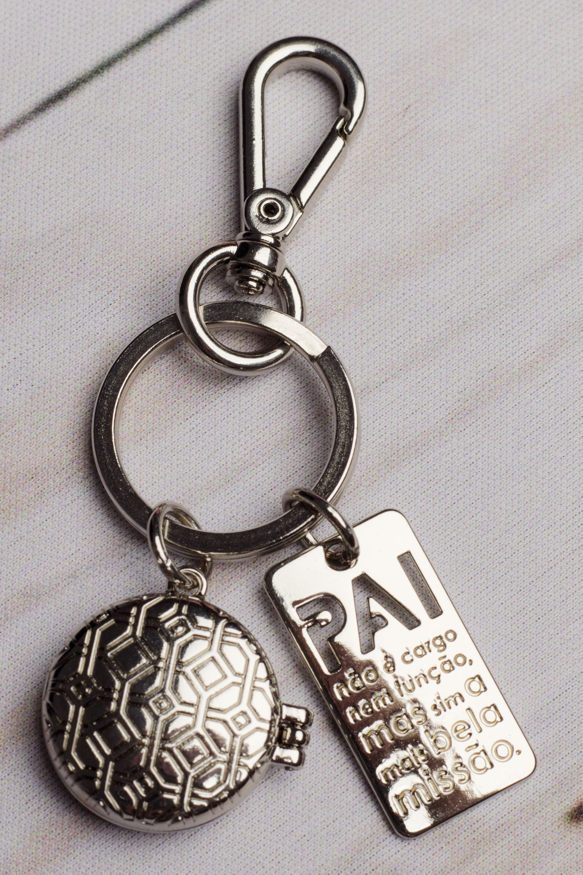 CHAVEIRO | Relicário Redondo com Placa Pai | DOURADO E PRATEADO